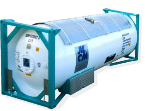 MCM’s tank range includes specialized T50 Gas containers, with different pressures from 13.8b to 34.4b, all certified for a wide range of products, designed to meet stringent safety standards and suitable for transporting industrial liquid gases (from 24,300 L to 25,100 L).